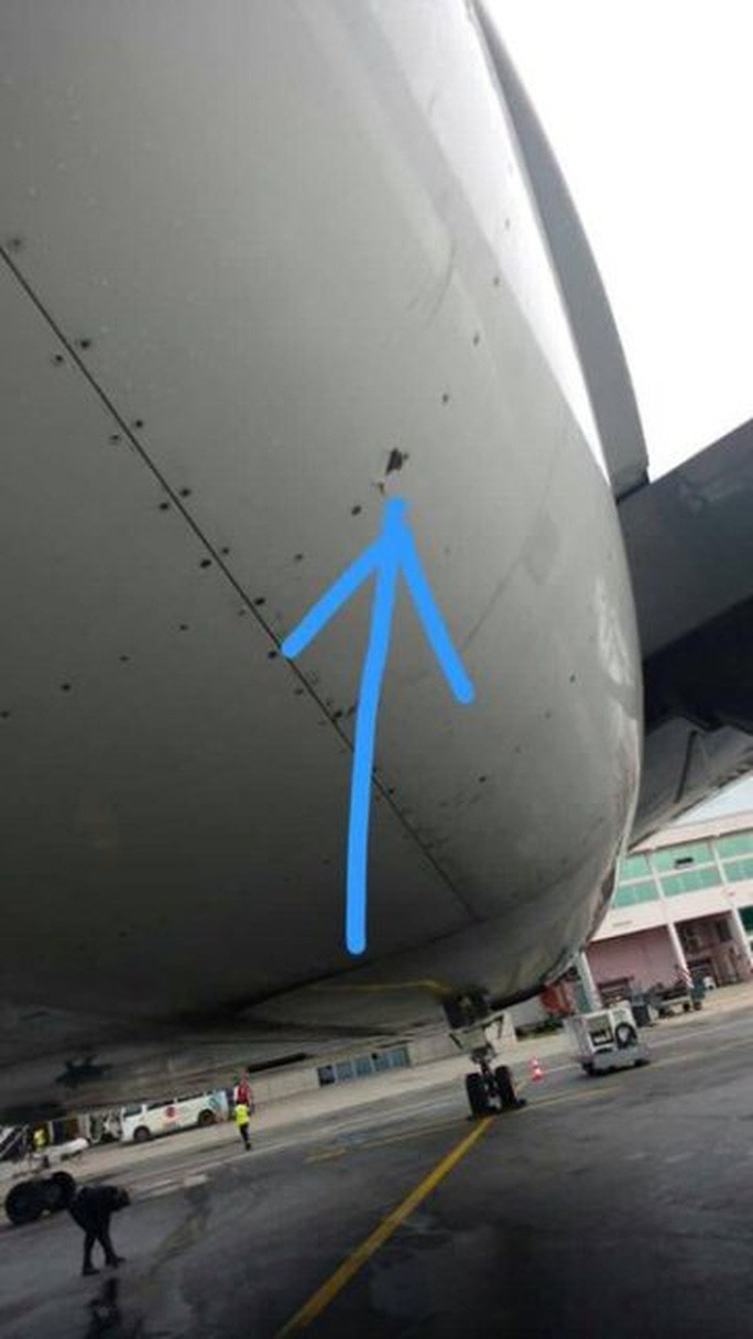 Một viên đạn đâm thủng thân của chiếc Airbus A330-200, trong khi viên còn lại bắn trúng đường băng. Ảnh: Twitter