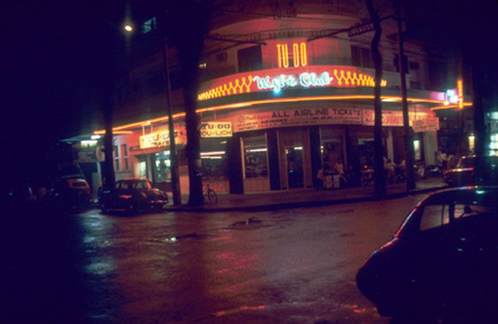 Ánh đèn neon rực rỡ ở vũ trường Tự Do vào buổi đêm. Ảnh: James A. Brosman Collection.