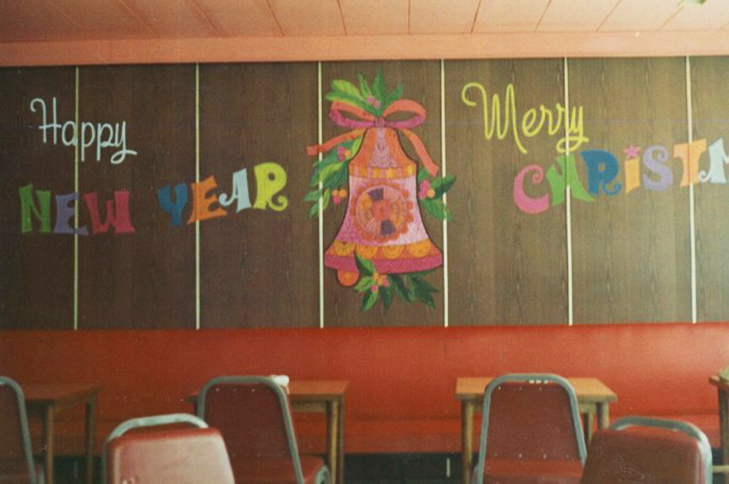Tranh tường trang trí Giáng sinh trong vũ trường Tự Do, 1972. Ảnh: Chip Seiple Collection.