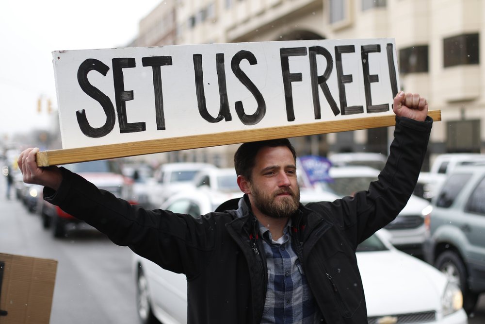 Cuộc biểu tình được tổ chức bởi Liên minh Bảo thủ Michigan với hàng nghìn người tham gia. Tổ chức này kêu gọi người biểu tình lái ôtô đến thủ phủ Lansing, chủ động gây tắc nghẽn giao thông để chính quyền bang lắng nghe bức xúc. Ảnh: AP.