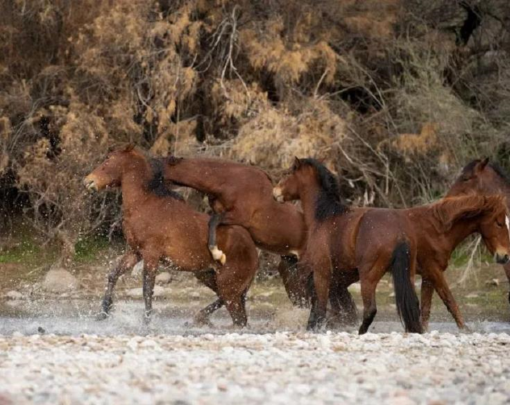 Sau 1 hồi bị 1 tên ngựa đực quấy rối, ngựa cái đã vung chân hất nước để đuổi đi. Thế nhưng chú ngựa đực này khá kiên trì và quyết phải 'làm' cho bằng được. Phải nhờ đến sự can thiệp của 1 chú ngựa khác, ngựa cái mới thoát được sự theo đuổi của ngựa đực