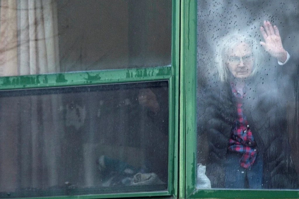 Một người vẫy tay từ một viện dưỡng lão ở Montreal. Ảnh: Reuters.Giãn cách nhiều đợt hiệu quả hơn giãn cách liên tục