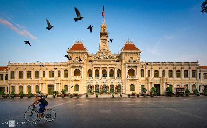 Trụ sở UBND TP HCM trống trải sáng 2/4. Nơi này luôn tấp nập người qua lại vào ngày thường. Ảnh: Giang Sơn Đông.