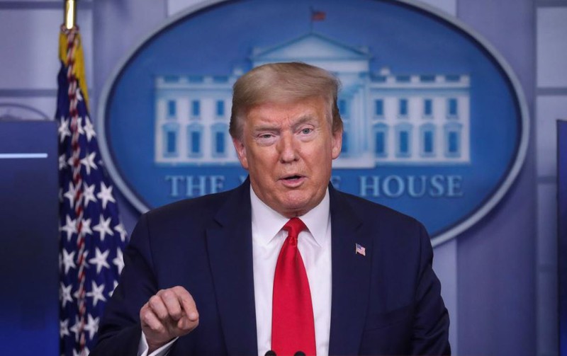 Tổng thống Mỹ Donald Trump trong cuộc họp báo ngày 17-4 tại Nhà Trắng về tình hình COVID-19. Ảnh: REUTERS
