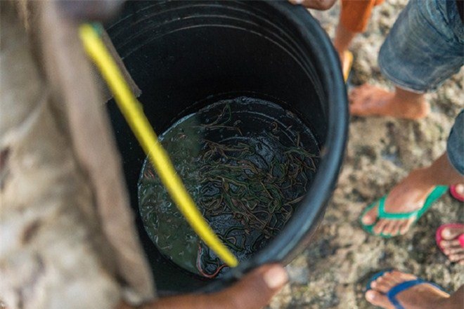 Sáng sớm ngày hội, pháp sư và đoàn tùy tùng sẽ ra bờ biển khấn cầu thần thánh theo nghi thức Marapu, theo sau là đông đảo dân làng. Tại đây, họ hiến tế một con gà ác, rồi dùng tim gà để đoán đọc “thông điệp” của thánh liệu lễ hội Pasola có được phép tiến hành hay không. Nếu mọi việc suôn sẻ, dân làng sẽ thi nhau ào xuống biển bắt sâu biển mang về khai hội. Thông thường, số lượng và màu sắc của sâu biển sẽ dự báo chất lượng của vụ mùa.