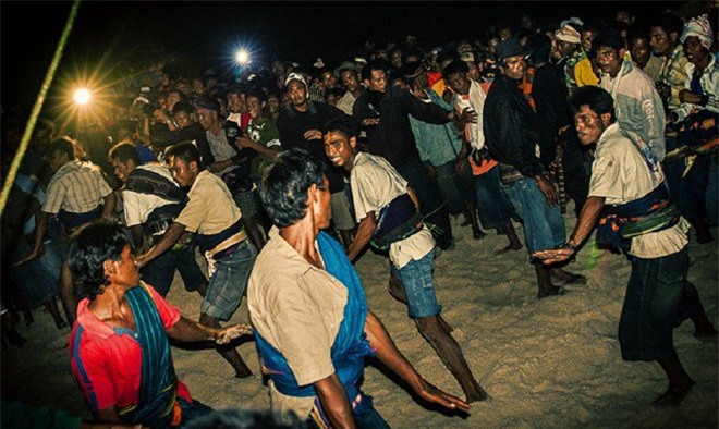 Vào đêm trước lễ hội Pasola, người Sumba tụ tập để tham gia pejura, trận đấu võ diễn ra bên bờ biển, dưới ánh trăng và tuyệt đối không được phép dùng đèn đuốc.