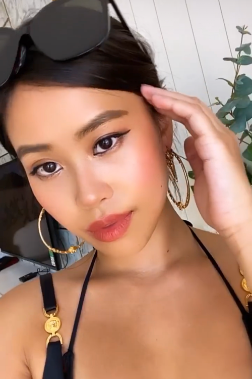 Dù chỉ quanh quẩn trong villa, hot girl vẫn trang điểm, ăn diện sành điệu, đúng chất rich-kids.