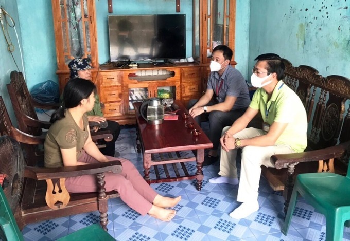 Chiều 19/4, lãnh đạo phường Bãi Cháy đến nhà xin lỗi chị Vũ Thị Chinh (ngồi ngoài bên trái). Ảnh: Bình Minh