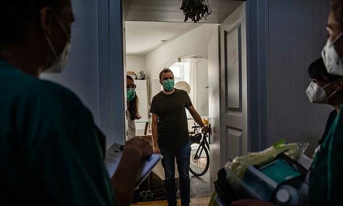 Các nhân viên y tế đến nhà Felix Germann tại thành phố Munich, Đức để lấy mẫu máu xét nghiệm. Ảnh: NY Times.