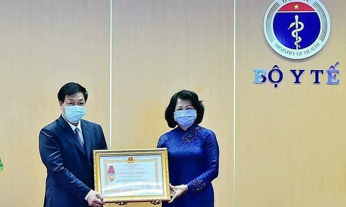 Bệnh viện Bệnh nhiệt đới Trung ương được Phó Chủ tịch nước Đặng Thị Ngọc Thịnh trao Huân chương Lao động hạng Ba sáng 24/4, do công lớn trong điều trị bệnh nhân Covid-19.