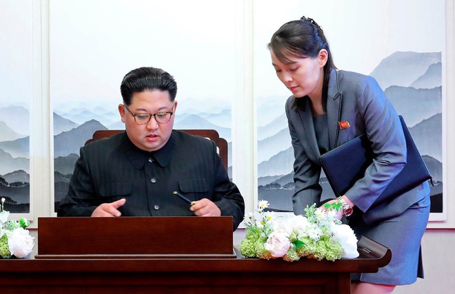 Ông Kim Jong Un và em gái Kim Yo Jong năm 2018. Ảnh: Korea Summit Press Pool.