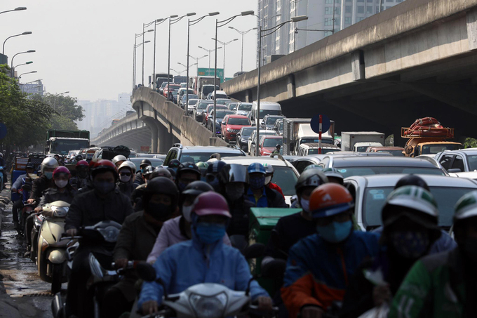 Đang trong thời gian dịch bệnh mà mọi người bắt đầu đi làm trở lại. Các tuyến đường quay về tình trạng tắc đường như trước. Hà Nội đang xem xét việc cấm cửa hàng không thiết yếu mở cửa trước 9h.