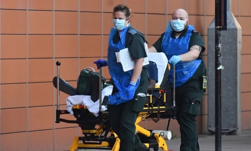 Nhân viên y tế di chuyển bệnh nhân Covid-19 tại Bệnh viện Hoàng gia London ở phía đông London, Anh hôm 21/4. Ảnh: AFP.