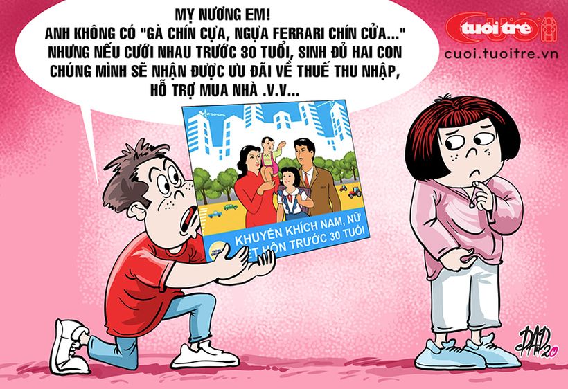 Theo khuyến khích mới của Chính phủ, nam nữ thanh niên nên kết hôn trước tuổi 30, và nếu sinh đủ 2 con sẽ được miễn giảm thuế và ưu đãi mua nhà ở xã hội