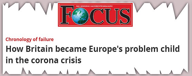 Tại Đức, nước có ít ca tử vong hơn nhiều so với dân số, tạp chí tin tức Focus gọi Anh là “đứa trẻ khó bảo của châu Âu”.