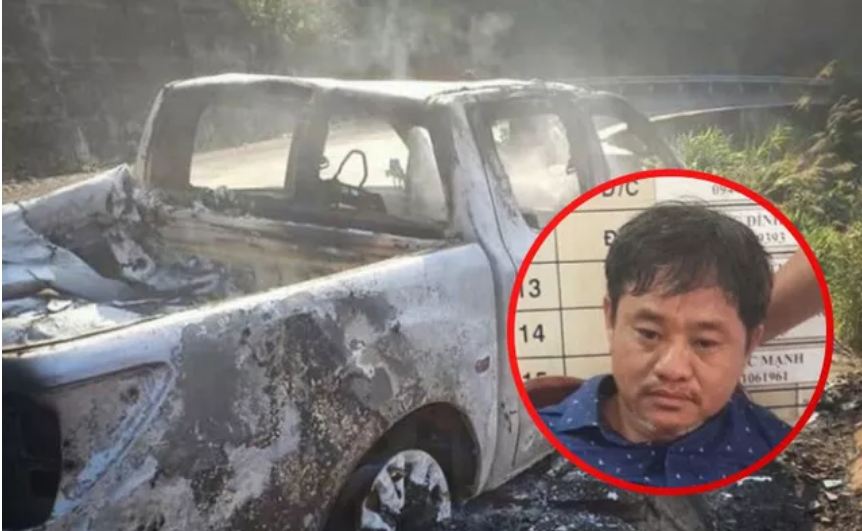 Sau khi ra tay sát hại anh V., đối tượng Minh tạo hiện trường giả bằng cách đưa nạn nhân lên xe ô tô đốt xác phi tang.