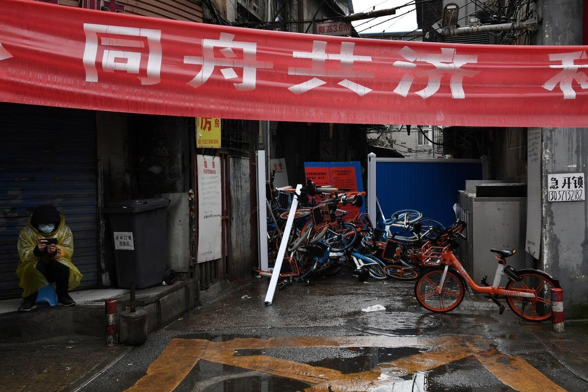 Một người canh gác trước lối vào khu dân cư tại Vũ Hán, Trung Quốc khi dịch bệnh chưa được kiểm soát (ảnh: SCMP)