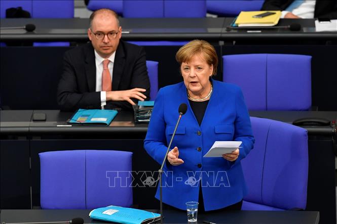 Thủ tướng Đức Angela Merkel phát biểu tại Bundestag (Hạ viện Đức) ở Berlin, ngày 13/5/2020. Ảnh: AFP/TTXVN