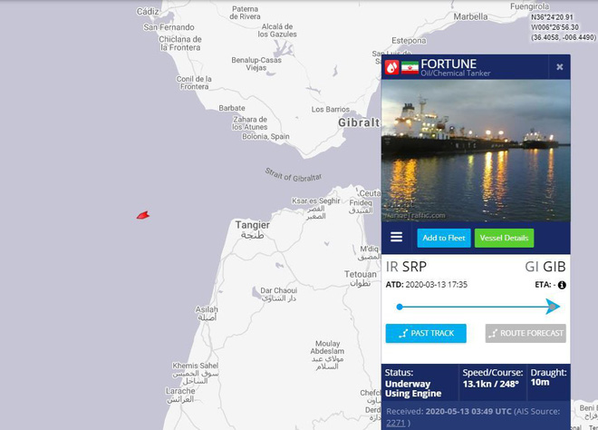 10h15: Tàu dầu mang tên Fortune - con tàu tiên phong trong đội hình 5 tàu của Iran đã vượt qua eo biển Gibraltar và hiện nó đang trên Biển Đại Tây Dương để tới Venezuela.