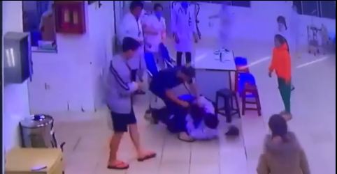 Hai cha con, người nhà bệnh nhân đánh bảo vệ và điều dưỡng bệnh viện