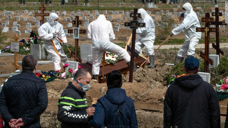 Lễ chôn cất một người tử vong vì Covid-19 tại nghĩa trang ở thành phố St. Petersburg. Ảnh: Getty.