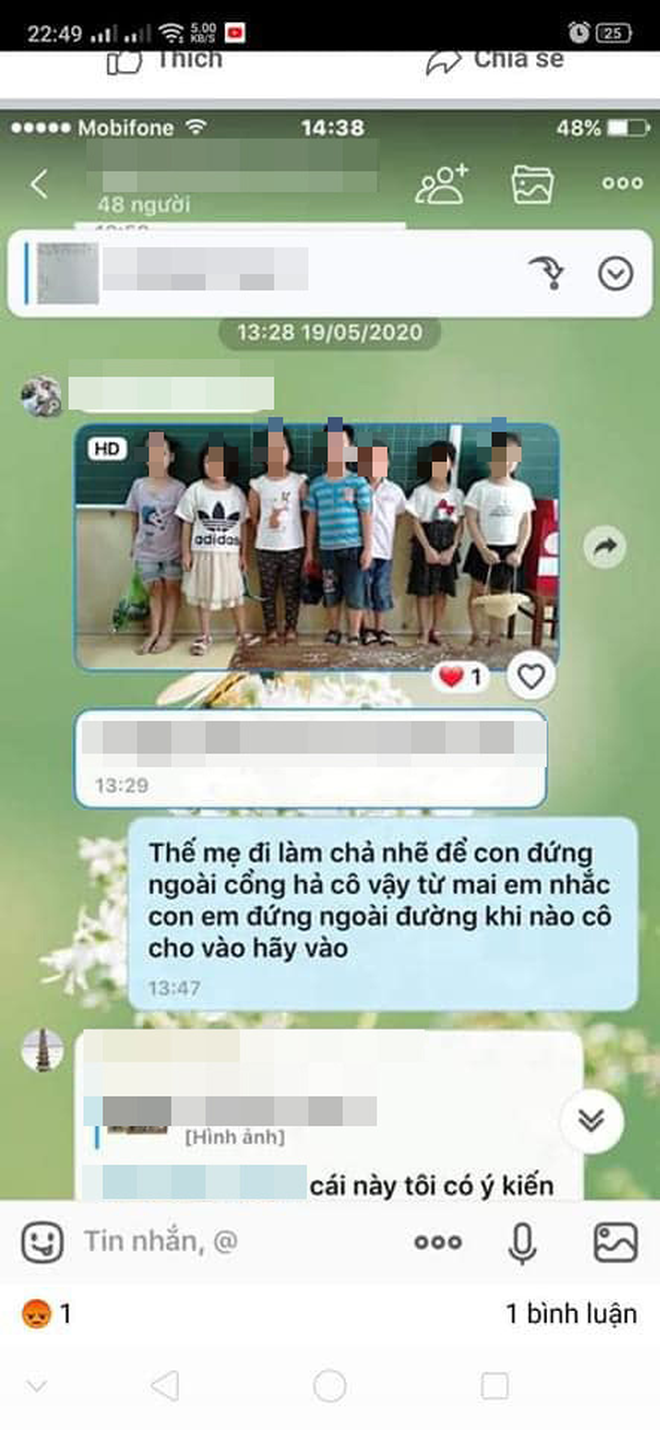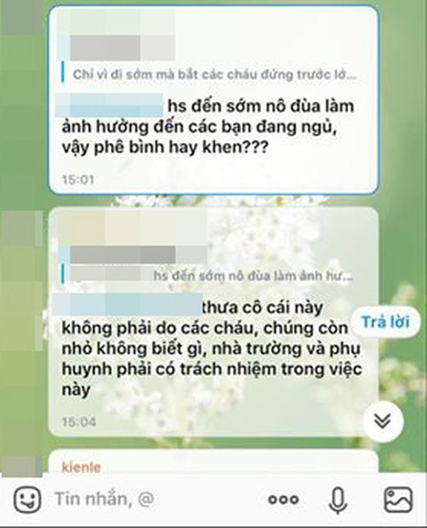 Phụ huynh của em học sinh đi học sớm bị cô giáo bắt phạt đứng giữa trời nắng bức xúc chia sẻ câu chuyện. Một số em học sinh khác đi học sớm cũng bị cô giáo phạt phê bình trước lớp.