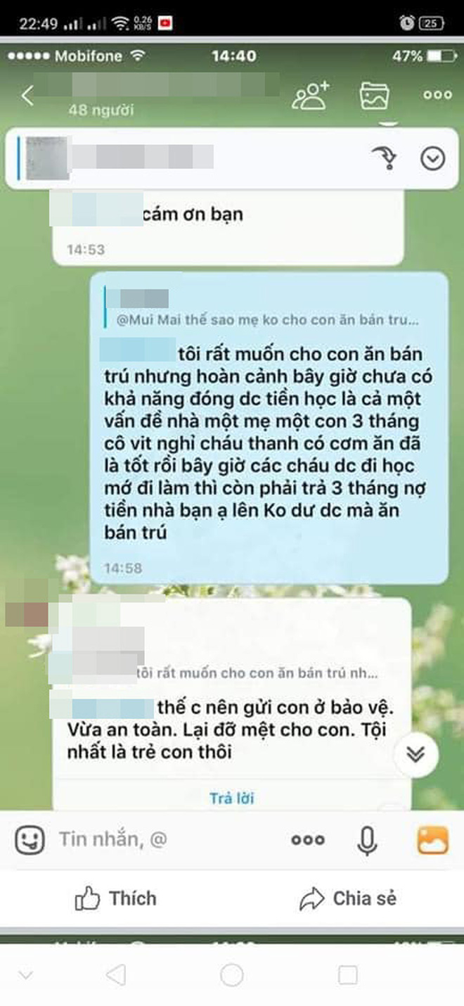 Chị M. cho biết, trong thời gian tới nếu phụ huynh và giáo viên vẫn không có chung tiếng nói như này thì có thể chị sẽ cân nhắc phương án chuyển trường cho con. Được biết, gia đình chị M. chỉ có một mẹ, một con và hiện đang phải đi thuê trọ.