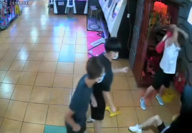 Đoạn video camera an ninh quay được cho thấy cậu bé nằm trên sàn, hai tay giơ lên để bảo vệ đầu và bị ít nhất 5 người đàn ông đeo khẩu trang tấn công.
