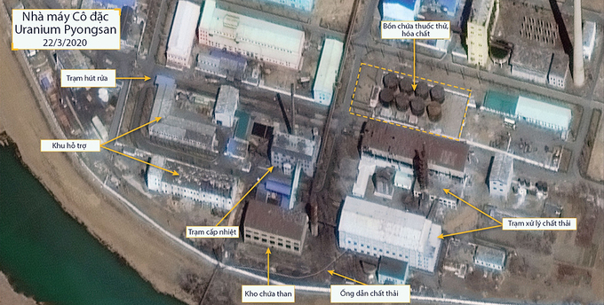 Ảnh vệ tinh của công ty Maxar Technologies chụp vào tháng 3 cho thấy nhiều hoạt động diễn ra tại Nhà máy Cô đặc Uranium Pyongsan ở tỉnh Hwanghae Bắc của Triều Tiên, nơi sản xuất "bánh vàng", loại bột urianium thu được từ các dung dịch lọc và là tiền chất chế tạo nhiên liệu hạt nhân.