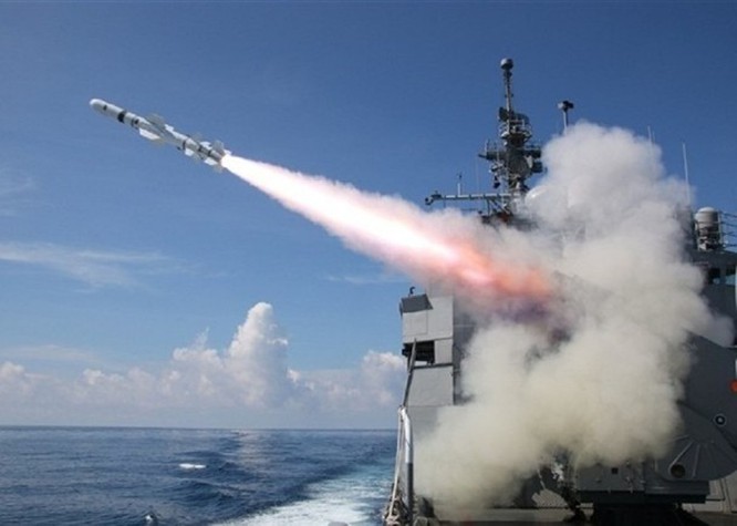 Tên lửa Harpoon Hạm đối hạm được phóng từ tàu Tế Dương của hải quân Đài Loan (Ảnh: Dongfang).