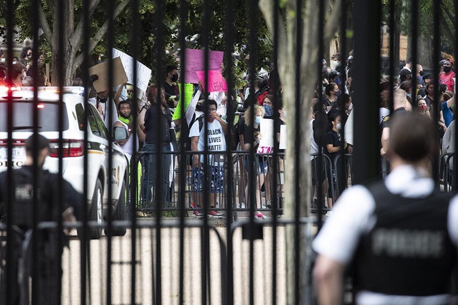 Người biểu tình kéo đến trước cổng Nhà Trắng hôm 29/5. Ảnh: Politico.