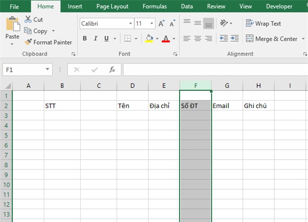 Trong ví dụ dưới dây, khi cần chèn cột ở cột C, bạn bôi đen cột C rồi ấn chuột phải và Insert. Sau đó, nếu muốn tiếp tục chèn cột ở bất kỳ nơi nào khác, bạn chỉ cần bôi đen cột đó và ấn F4. Cột mới sẽ được chèn mà bạn không cần phải lặp lại các thao tác gồm bôi đen cột, chuột phải, insert.