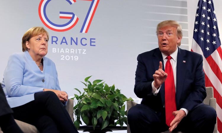 Thủ tướng Đức Angela Merkel (trái) và Tổng thống Mỹ Donald Trump tại cuộc gặp song phương trong khuôn khổ hội nghị G7 tại Biarritz, Pháp hồi tháng 8/2019. Ảnh: Reuters.
