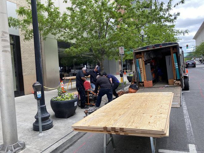 Để đảm bảo an toàn, Apple đã phải đóng cửa gần như toàn bộ các cửa hàng Apple Store tại Mỹ, cho đến hết chủ nhật tuần này. Tuy nhiên có vẻ như việc đóng cửa vẫn là chưa đủ, mới đây Apple đã phải có một động thái bảo vệ các cửa hàng của mình một cách chắc chắn hơn.