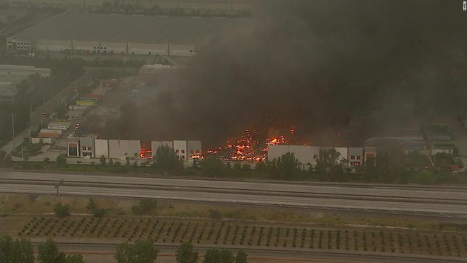 Đám cháy ban đầu được ước tính lan khoảng 27.000 m2, theo CBS. NBC Los Angeles sau đó dẫn lời lính cứu hỏa cho biết đám cháy đã lan rộng khoảng 56.000 m2 từ trung tâm phân phối hàng hóa của nhiều công ty lớn, trong đó có Amazon.Hình chụp trên cao cho thấy ngọn lửa bao trùm toàn bộ khu nhà với mái nhà sụp đổ, đám khói dày đặc có thể thấy rõ.