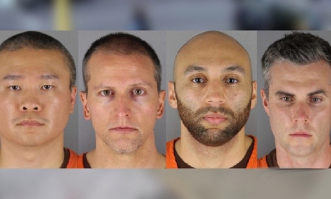 Chauvin (thứ hai từ trái sang) và ba đồng nghiệp bị truy tố. Ảnh: CBS.