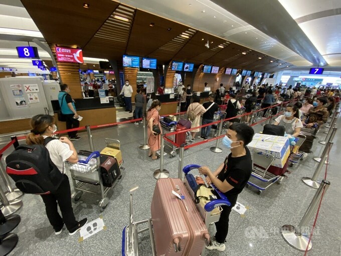Các công dân Việt Nam làm thủ tục tại sân bay quốc tế Đào Viên Đài Loan hôm 29/5 trước khi lên chuyến bay về nước hôm 29/5. Ảnh: CNA