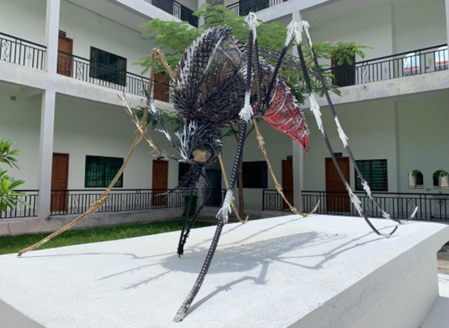Bức tượng muỗi bên ngoài phòng thí nghiệm của Jessica Manning ở Campuchia. Ảnh: Reuters