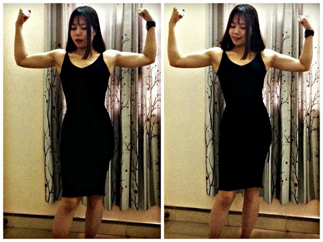 Tăng cân khiến cô khá hoang mang, nhưng cảm thấy cơ thể thon gọn hơn khi 57 kg nên 9X vẫn kiên trì luyện tập không để ý nhiều đến cân nặng.