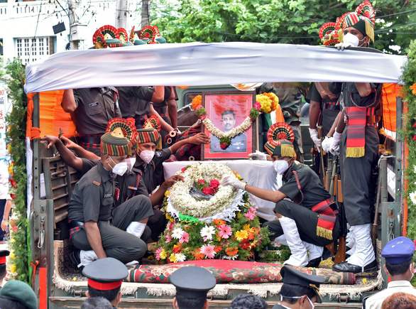 Theo Hãng tin Reuters, nhiều người dân Ấn Độ đã hô vang "Vinh quang cho đất mẹ Ấn Độ" trong lễ tang của đại tá B. Santosh Babu, sĩ quan cao cấp nhất của nước này tử nạn trong vụ đụng độ ngày 15-6.