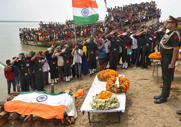 Lễ tang của 1 trong 20 quân nhân Ấn Độ diễn ra tại thành phố Maner, bang Bihar ngày 18-6 - Ảnh: REUTERS