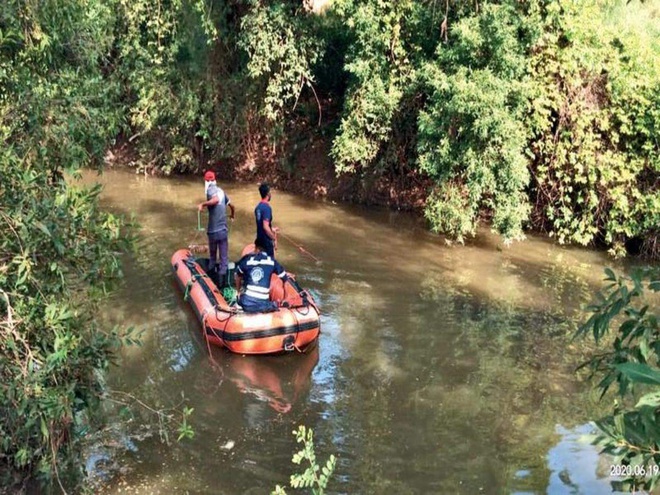 Các nhân viên cứu hộ tìm kiếm thi thể cậu bé trên sông. Ảnh: Times of India.