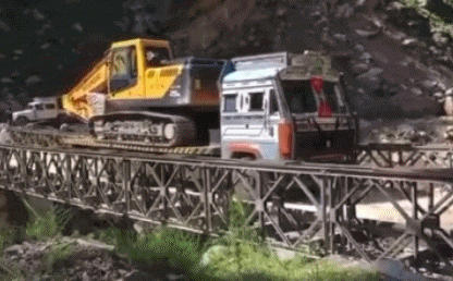 Một cây cầu duy nhất nằm trên tuyến đường dẫn tới biên giới Trung-Ấn đã bất ngờ bị gãy sau khi một chiếc xe tải chở máy móc hạng nặng phớt lờ cảnh báo nguy hiểm để đi qua. Do xe tải chở máy móc hạng nặng chạy đến giữa cầu thì cây cầu đột nhiên bị gãy.