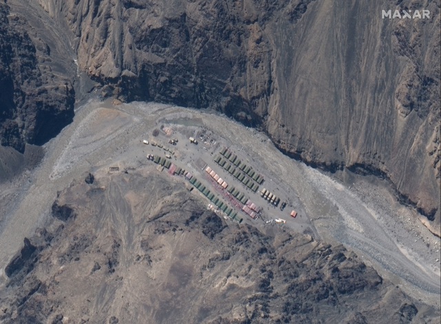 Ảnh vệ tinh của Maxar cho thấy căn cứ của quân đội Trung Quốc tại thung lũng Galwan. (Ảnh: Reuters)
