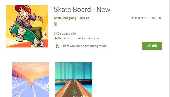 Skate Board – New là 1 trong 47 game chứa trojan HiddenAds vừa bị Avast phát hiện.
