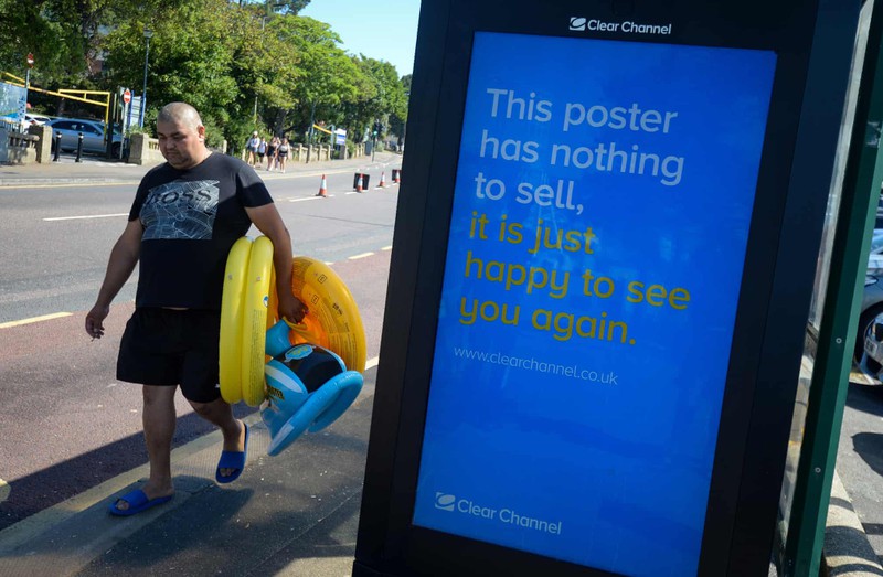 "Tấm áp phích này không có gì để bán, nó chỉ thấy vui khi được gặp bạn". Ảnh: Finnbarr Webster/Getty Images.