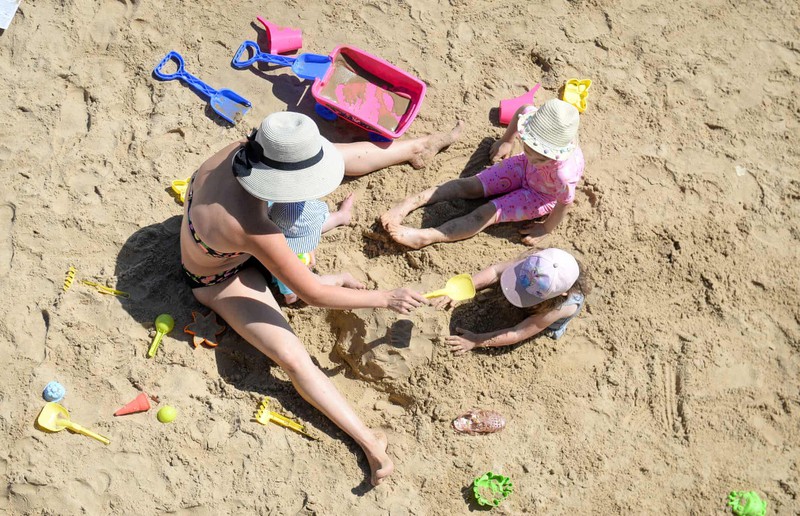 Các bé chơi cát trên bãi biển ở Bournemouth.