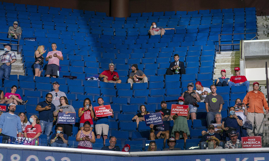 Những hàng ghế trống tại buổi vận động tranh cử của Trump ở Tulsa, Oklahoma, hôm 20/6. Ảnh: NYTimes.