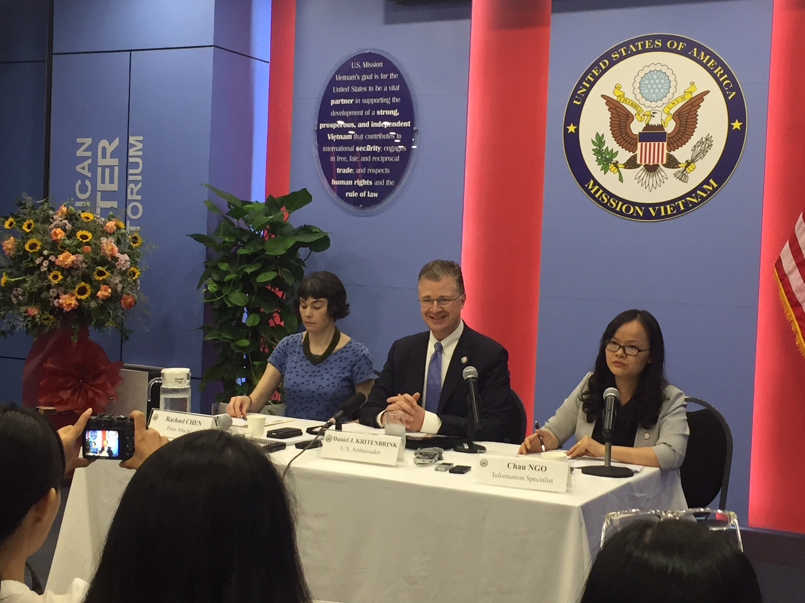 Mở đầu cuộc họp báo kỷ niệm 25 năm quan hệ ngoại giao Việt Nam Hoa Kỳ chiều nay (2/7), Đại sứ Hoa Kỳ tại Việt Nam Daniel Krittenbrink nói rằng, bước tiến hai nước có được là rất to lớn. Ông điểm lại những thành tựu chính trong quan hệ song phương trước khi trả lời câu hỏi của báo chí.