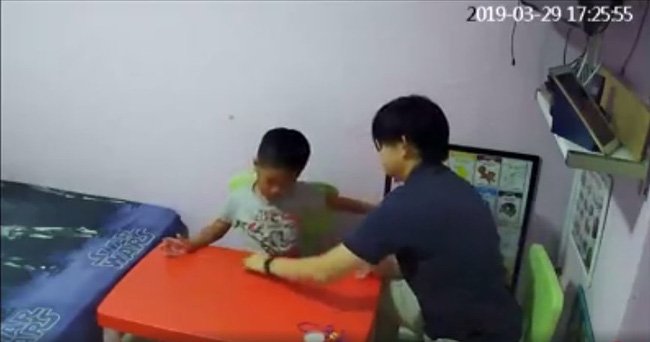 Mặc kệ tiếng đứa trẻ khóc gào, nhà trị liệu vẫn không dừng lại các hành động mang tính bạo lực của mình.